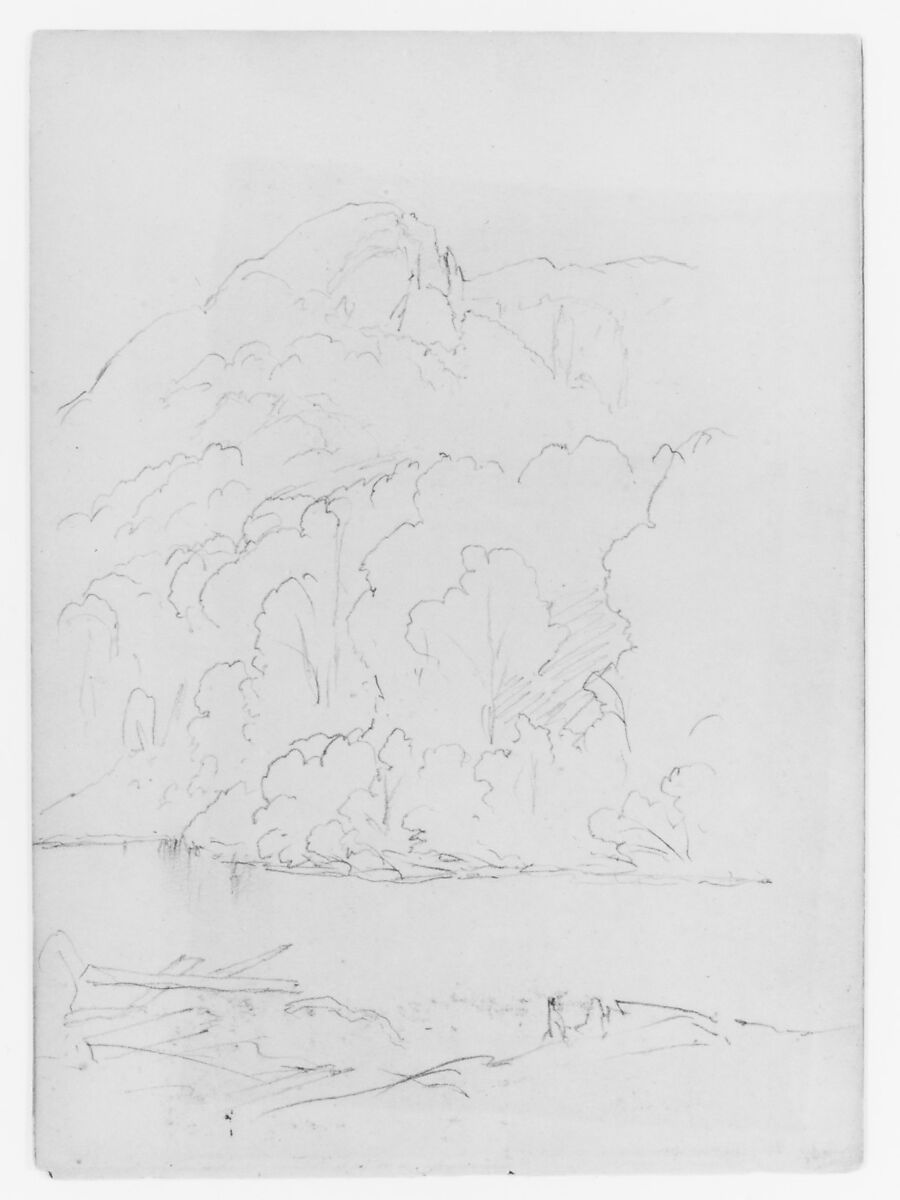 This sketchbook, donated to mark the seventy-fifth anniversary of the American Wing, dates from the decade of Johnson’s maturity as a landscape painter. It augments the Museum’s collection of American landscape sketchbooks by such well-known Hudson River School artists as Asher B. Durand, Albert Bierstadt, Jervis McEntee, John Casilear, and the Philadelphia landscape painter William Trost Richards. In this book, started while Johnson kept a studio at 626 Broadway during the 1860s, the artist recorded several Hudson River settings.