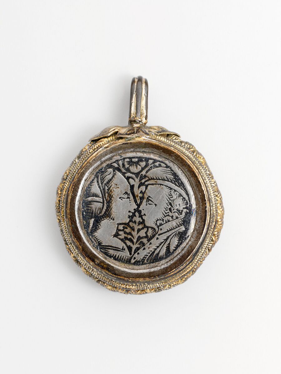 There is no firm evidence about the original purpose of this type of niello pendant, but theories range from betrothal gifts (those with double portraits) to portable reliquaries (those with religious motifs).