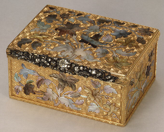 - Medium: Gold, tinted mother-of-pearl, diamonds