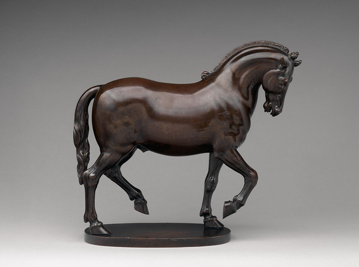 An echo of this invenzione—several variants removed from the model—can be found in the pacing stallion formerly in the Robert H. Smith collection and attributed to Barthélemy Prieur.[21]