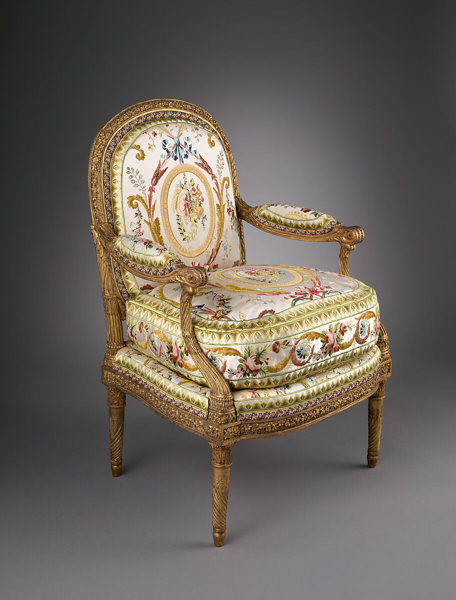 Although intended to furnish Marie-Antoinette’s grand cabinet intérieur at the château de Versailles during the winter months, the chair and the rest of the set were removed in 1783, when the grand cabinet intérieur was redecorated and placed in the queen’s billiard room on the floor above. Sold during the French Revolution, the entire set of furniture was acquired by the American statesman Gouverneur Morris, who served as minister of the United States in France from 1792 to 1794. The pieces were subsequently sent to Morrisania, Morris’s country estate in the Bronx.