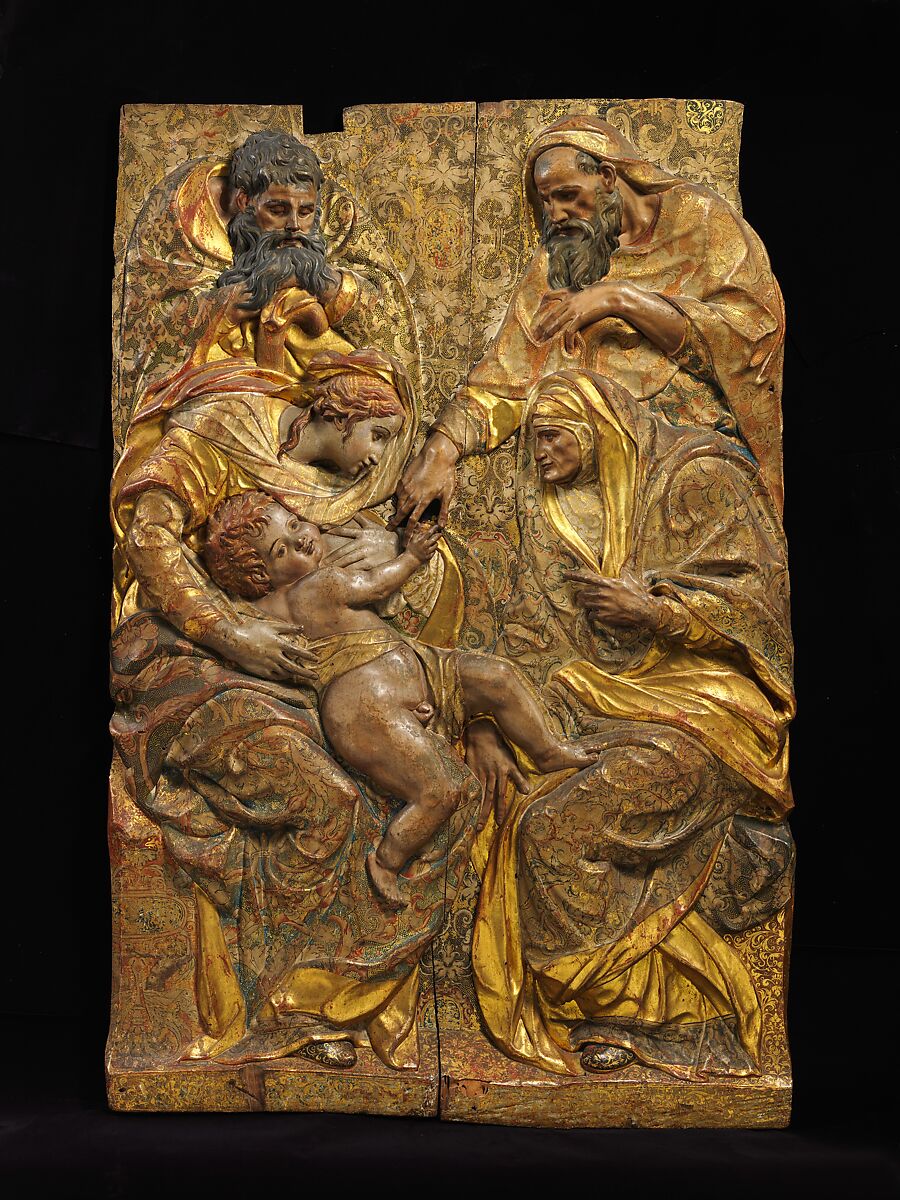 This panel came from a retable made for the parish church of Los Ojíjares, near Granada, which was dedicated to Saint Anne, the mother of the Virgin. Saint Anne and her husband, Joaquim, prominently featured in the relief, were honored in Catholic devotion as emblems of the Immaculate Conception of the Virgin, a cult that was especially popular in Spain. The panel remained in place from its creation in the mid-sixteenth century until it was sold in 1881.