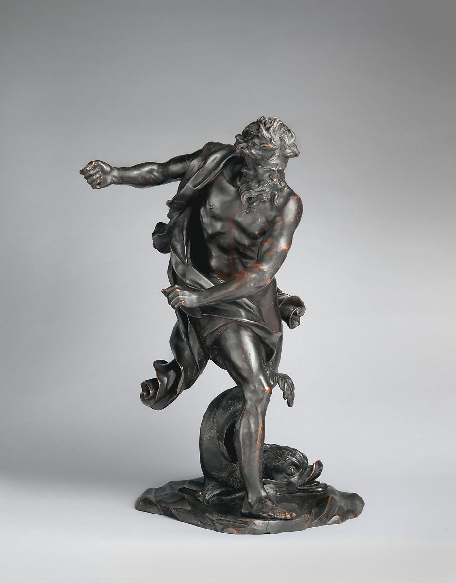 Bernini’s authorship of a small-scale model to be cast in bronze has long been disputed. In 1998, discussing the Borghese version, Sebastian Schütze rightly dismissed the notion, suggesting instead a Florentine artist close to Giovanni Francesco Susini, in view of the Corsini provenance and the highly polished surface.[7] Peter Fusco advocated Bernini’s own hand, but Philippe Malgouyres has more convincingly argued that the bronze reductions may not even have been produced in Bernini’s circle.[8] The composition seems a curious assemblage of stylistic elements from his works: the Neptune is a copy of the figure for the Villa Montalto; the dolphin belongs to the same breed as the marine mammals designed by Bernini after the 1650s.