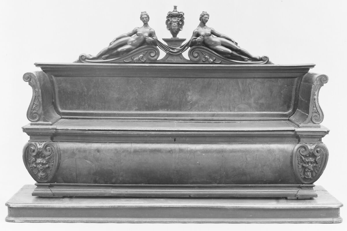 Carved walnut furniture was highly prized and sought after to adorn Florentine palaces. This piece did double service—used for seating and for storage. Its Italian name, cassapanca, translates as "chest-bench."