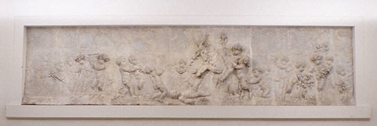 This is one of a group of reliefs from the court of the Hôtel de Bourbon-Condé, Paris. It was built by the architect Alexandre-Théodore Brongniart in 1781 for the princess Louise Adélaïde de Bourbon-Condé. The reliefs remained there until the beginning of the twentieth century.