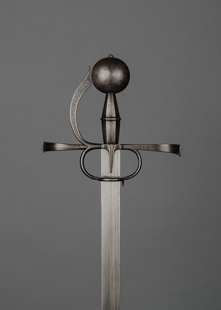 Rapiers were developed in the late fifteenth century and became steadily more popular throughout the sixteenth century. This example is rare and important for its finely engraved decoration inspired by Middle Eastern ornament.