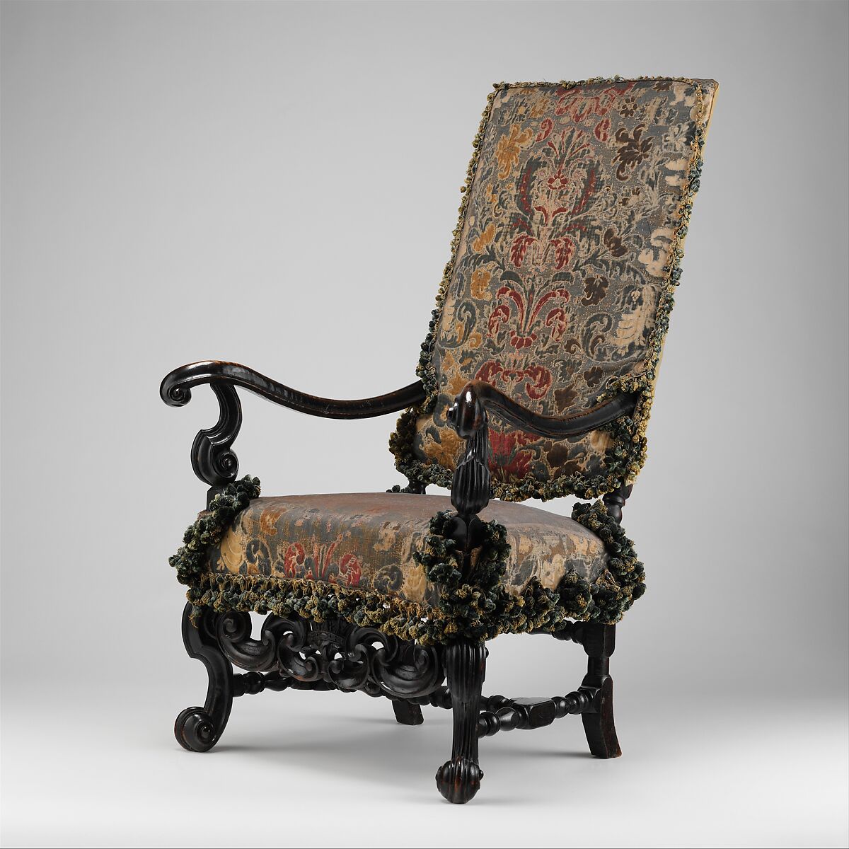 - Title: Upholstered armchair, originally from a set of eight, from Burley-on-the-Hill, Rutland (one of a pair)
