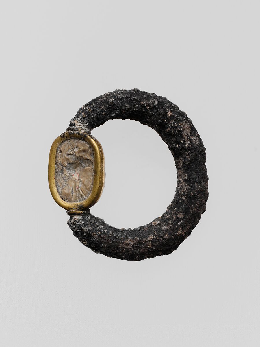 The motif on the scarab's bezel is no longer distinguishable.