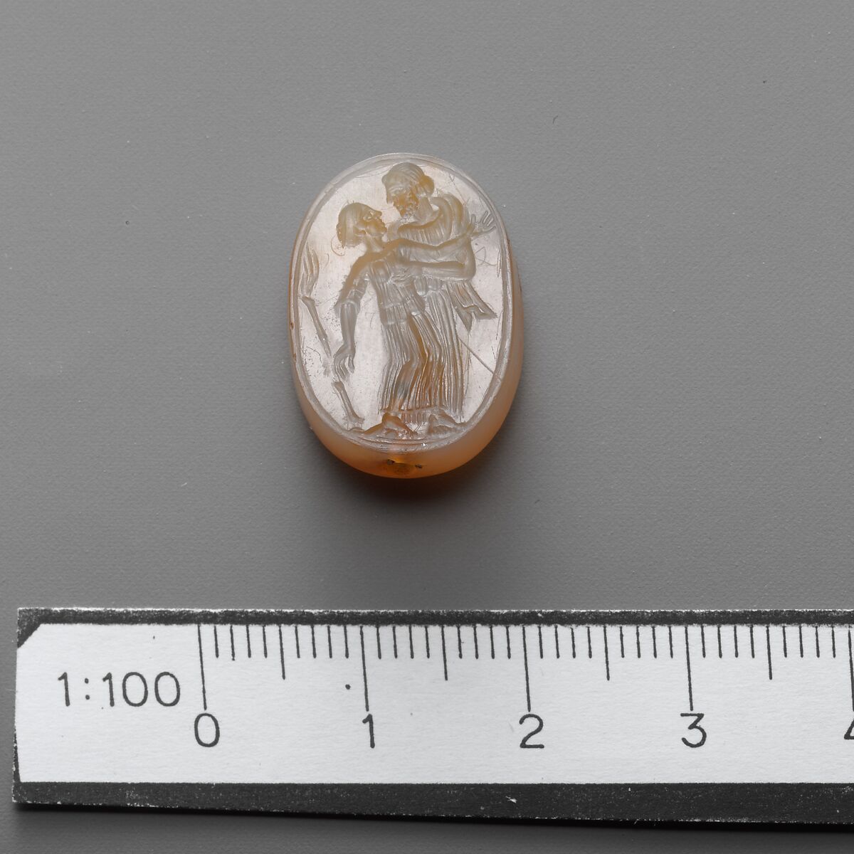- Title: Chalcedony scaraboid in silver ring