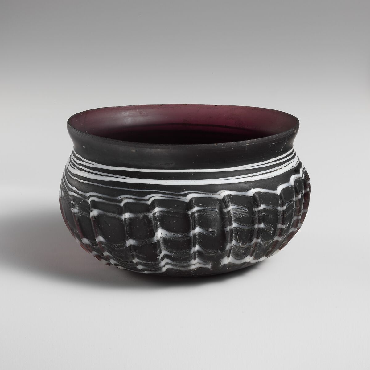 Ribbed bowls like these, often decorated with opaque white trails, were very popular throughout the Roman world and may be seen as successors to the cast ribbed bowls of the first century B.C. to the early first century A.D. A major center of production was probably located in Northern Italy or the province of Pannonia along the main route to the Danube frontier.