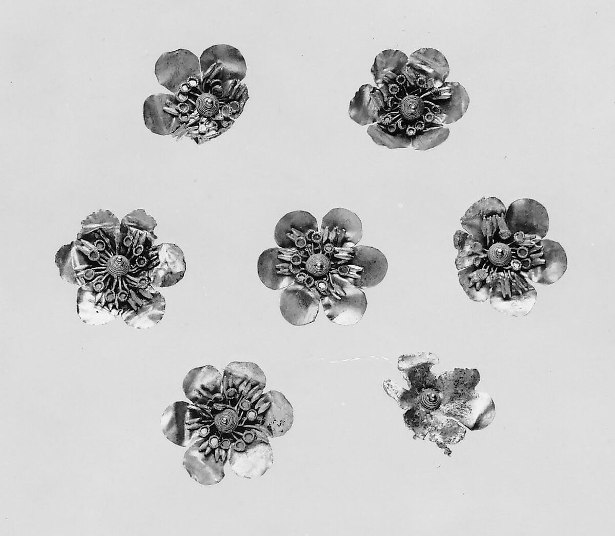 Seven gold rosettes, part of the Madytos Jewelry.