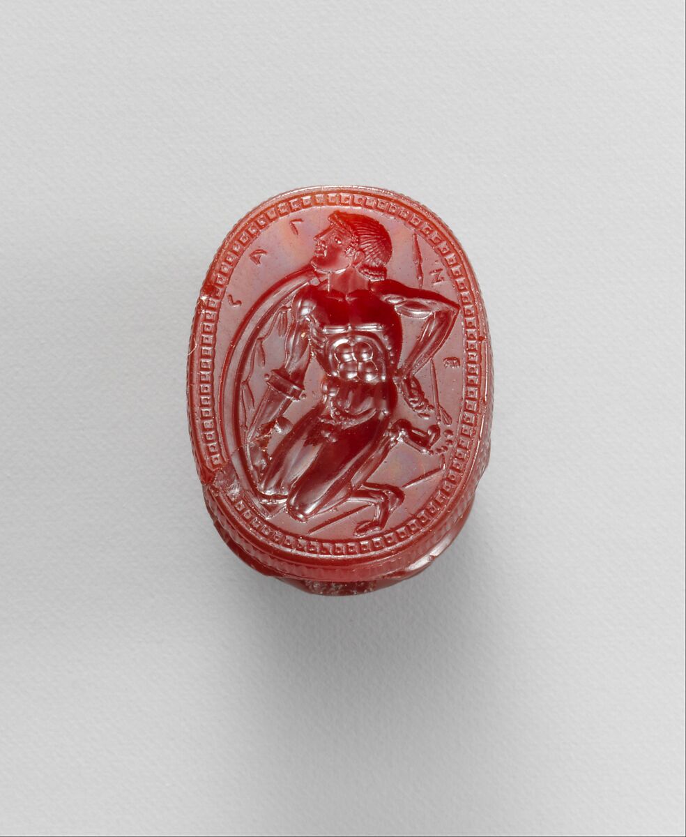 Kapaneus (inscribed in Etruscan letters as Capne) struck by Zeus' thunderbolt