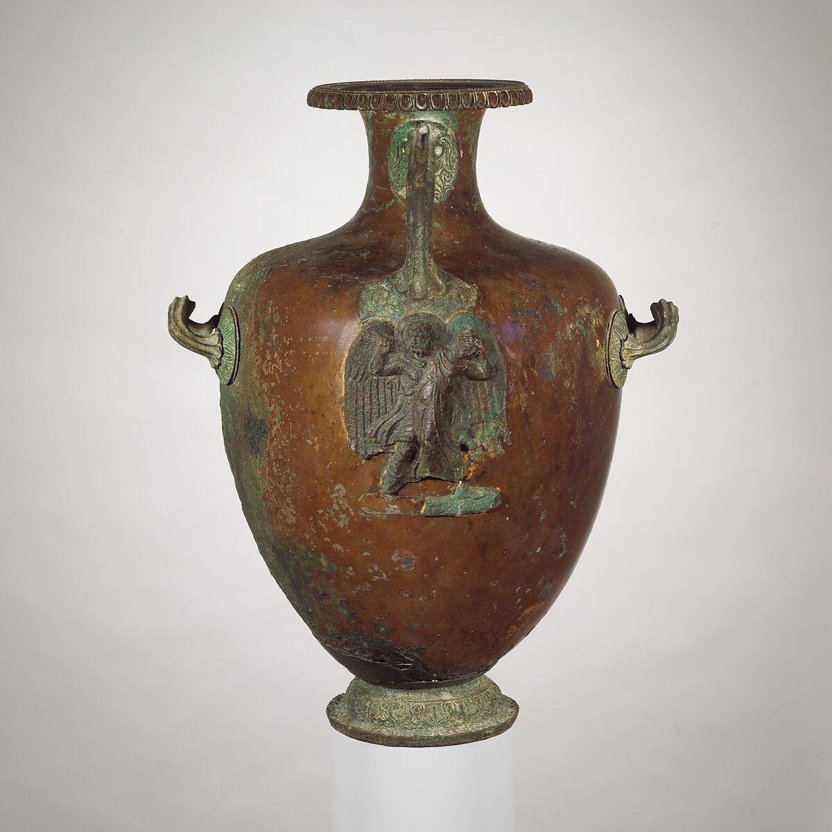 The relief under the handle shows Boreas, the north wind, abducting Oreithyia, the daughter of Erechtheus, legendary king of Athens.