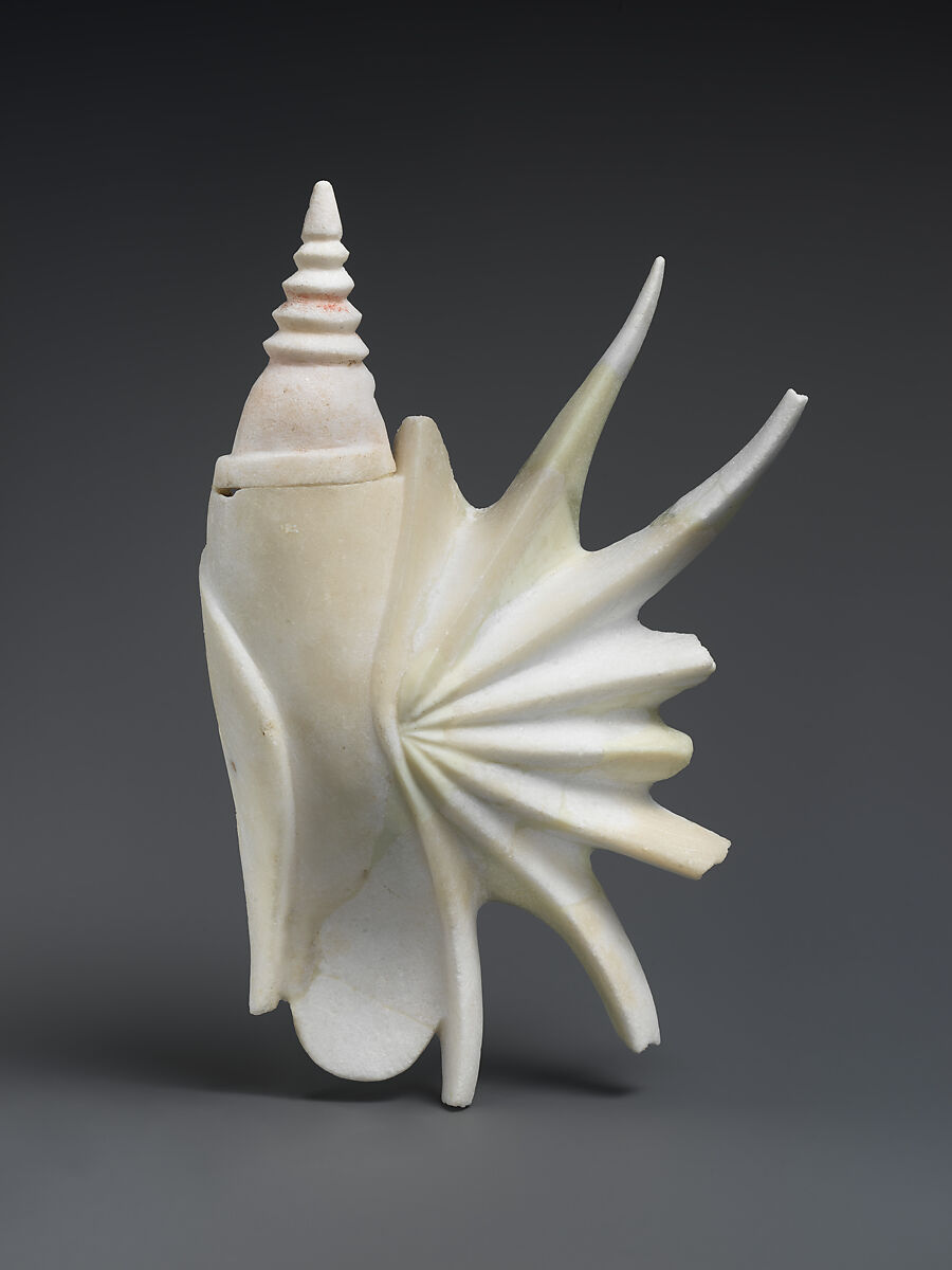 This work imitates a pelican's foot shell, which is common to the Mediterranean. Only a handful of marble shells are known. They must have been manufactured in the same Greek workshops that produced elegant marble vessels intended as grave offerings for the dead.