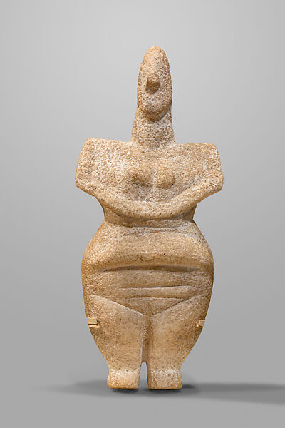This work of art is currently on loan to the museum.The figure is characteristic of a group of quite small examples undoubtedly connected with fertility. It is in exceptionally good condition and remarkable for the preservation of the head which, in all complete objects of this type, receives less emphasis than the body. A larger counterpart (1972.118.104) is displayed in a nearby case.