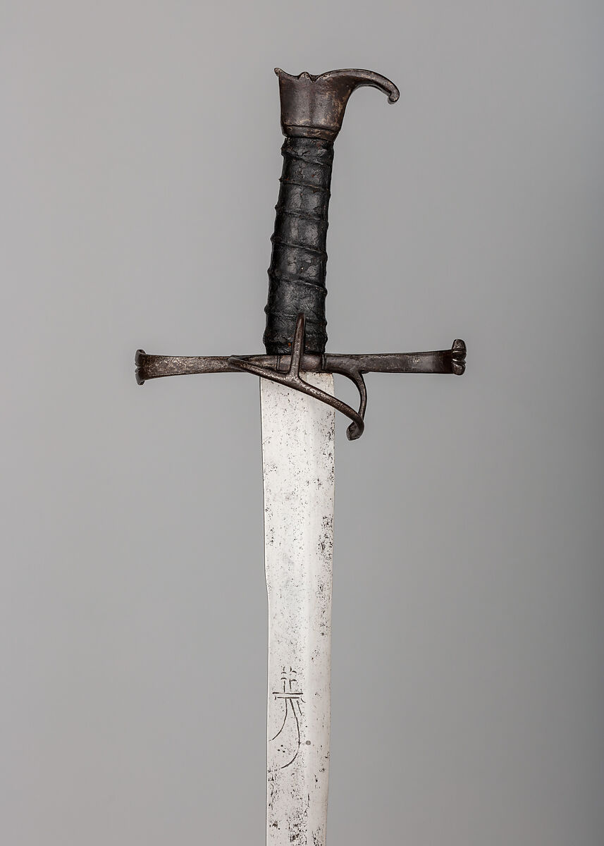 The Swiss saber is distinguished by a very long, curved, and relatively thin blade, and a hilt fitted with a grip that is long enough to allow the weapon to be wielded with one hand or two. It was used in Switzerland from about the 1520s until the early seventeenth century. Often, from about the mid-sixteenth century onward, the pommel has the form of a lion’s head.