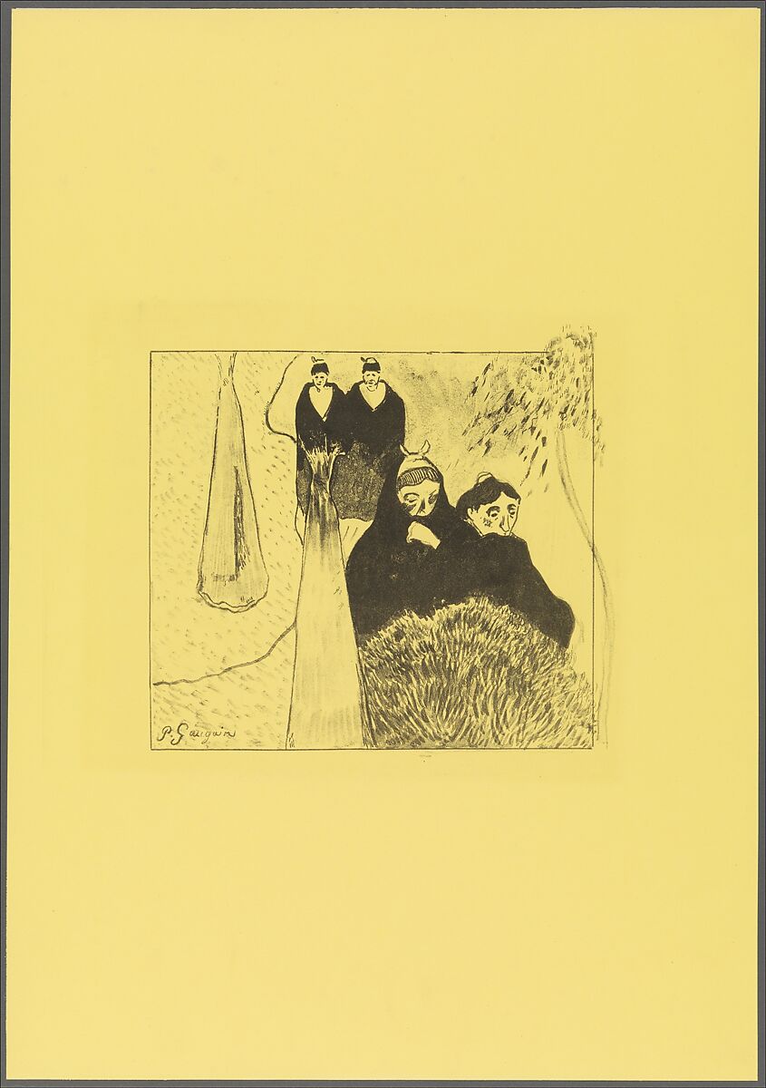 On the fairgrounds of the Paris World's Fair of 1889, at Volpini's Café des Arts, Gauguin exhibited a brand new suite of ten zincographs printed on bright yellow paper. Known as the "Volpini Suite," the prints served as a pictorial souvenir of Gauguin's recent travels in Brittany, Martinique, and Arles.