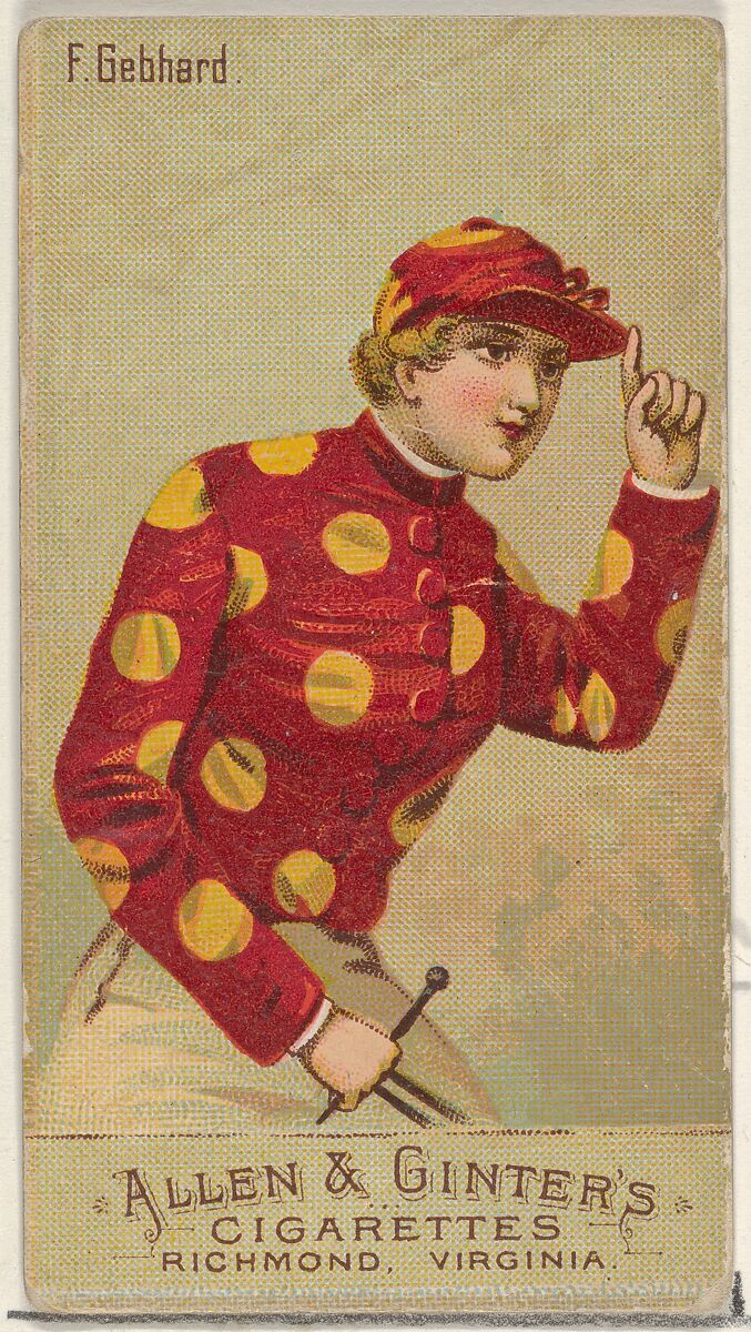 - Title: F. Gebhard, from the Racing Colors of the World series (N22b) for Allen & Ginter Cigarettes