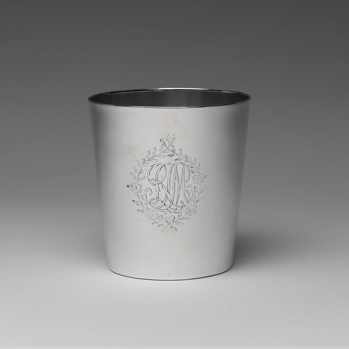 This handsome pair of beakers was supplied by maker Cary Dunn to accompany a similarly engraved tankard (13.197.1). The set descended in the Livingston–Tillotson family.