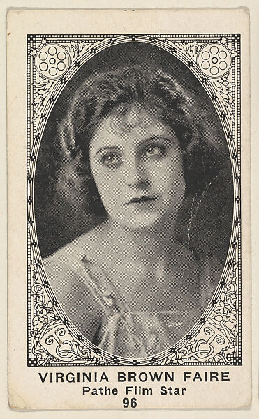 - Title: Card 96, Virginia Brown Faire, Pathe Film Star, from the Movie Actors and Actresses series (E123), issued by the American Caramel Company