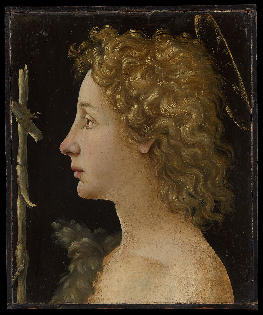 Paintings and sculptures of the young Saint John the Baptist were common in Florentine homes, where citizens invoked him as the patron saint of Florence and protector of its people. In domestic settings, he was portrayed as both a saint and a Florentine boy, a deliberate ambiguity that would have made him relatable to young devotees in the household. Fittingly, Piero’s John the Baptist is both a sympathetic youth and a mystical guardian. This was one of the first works that Piero painted, and his skillful execution of naturalistic details reveals his interest in Netherlandish painting.