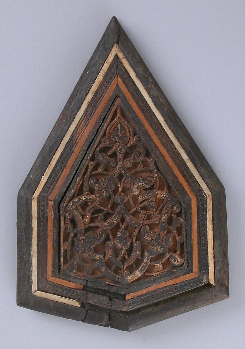 Although the pattern of this group of panels appeared as early as the late twelfth century in Azerbaijan and is recorded as late as 1480–81, it enjoyed a particular vogue in Cairo between 1330 and 1350. A number of minbars in Cairo with this pattern and from this period bear very close resemblance to these pieces.