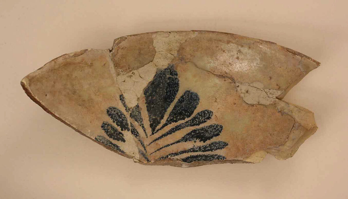 This bowl was excavated at Ctesiphon, the Sasanian metropolis and administrative capital conquered by Arab Muslim armies in 637. The city was known in Arabic as al-Mada’in, or “the cities”, for its extended area. Arab historians indulge in describing al-Mada’in/Ctesiphon’s grand monuments, which obsessed Muslim rulers and may have acquired a symbolic meaning related to its imperial past. This was the case of the Taq-i Kisra, an impressively-sized ivan (a vaulted hall with one side open) partially dismantled to reuse its bricks in caliphal buildings in the new capital Baghdad. Finds like this fragment, which was excavated at a site named el-Ma'aridh II, attest to the continued occupation of Ctesiphon’s urban area in the early Islamic period.