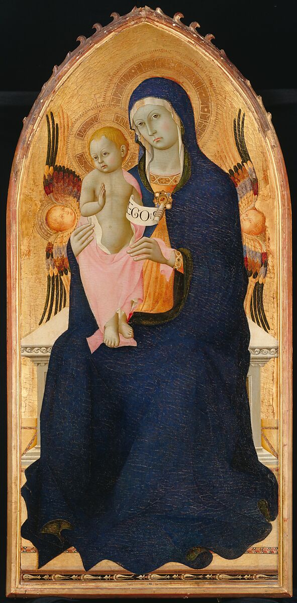 This monumental Madonna, enthroned and flanked by cherubim, likely formed the central component of a large multi-paneled polyptych. The enigmatic Osservanza Master has variously been identified as Sassetta and also as the young Sano di Pietro, based on close stylistic affinities with these other Sienese artists. It is also possible that the paintings attributed to the Osservanza Master are the product of a collaborative workshop to which these artists belonged.