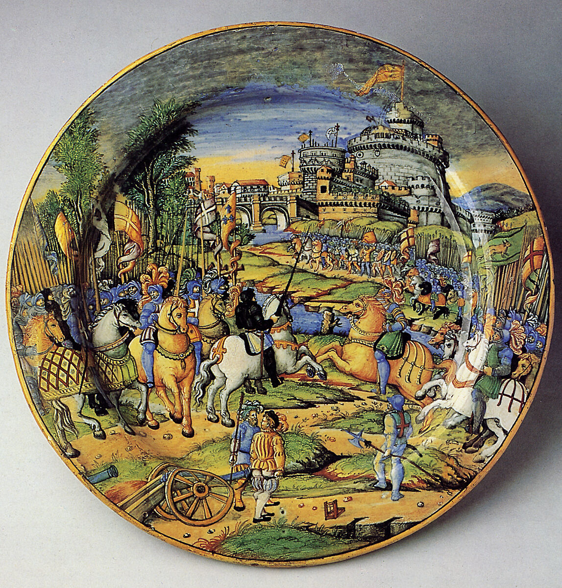 - Title: Large plate (grande piatto): An episode from the Sack of Rome, 1527: the assault on the Borgo (?)