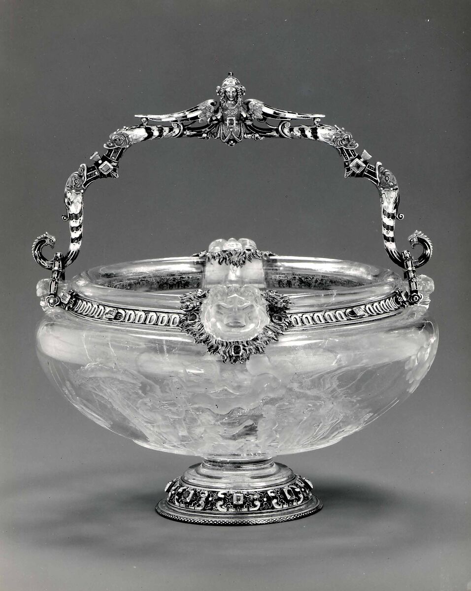 - Medium: Rock crystal, cut on the wheel, enameled gold and diamonds.