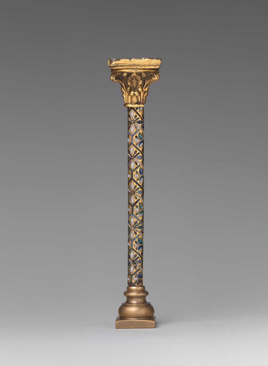 capital: 1 3/8 x 1 1/2 x 1 1/2 in. (3.5 x 3.8 x 3.8 cm) - Classification: Enamels-Champlevé