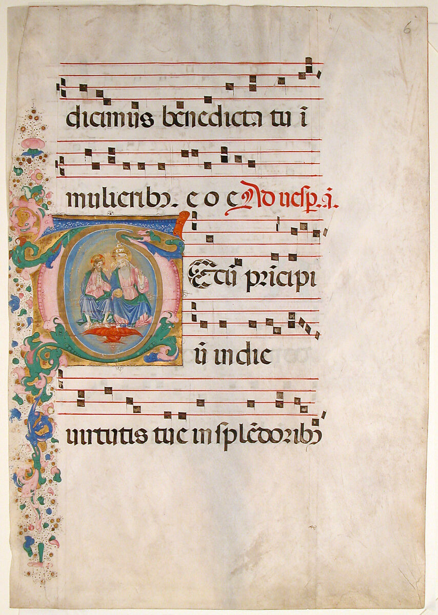 - Title: Manuscript Leaf with the Trinity in an Initial T, from an Antiphonary