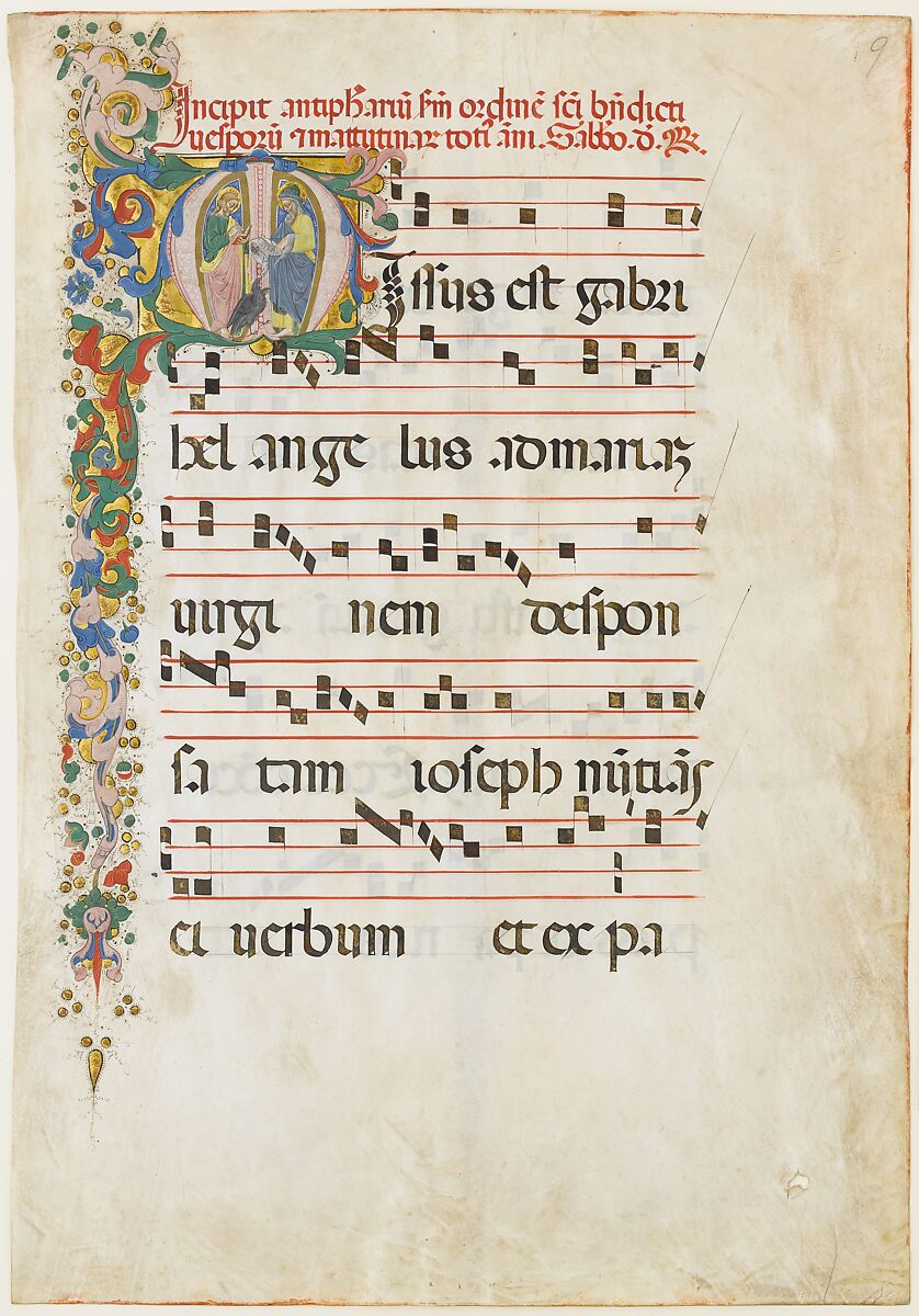 Manuscript Leaf with Saint John the Evangelist and Saint John the Baptist in an Initial M, from an Antiphonary