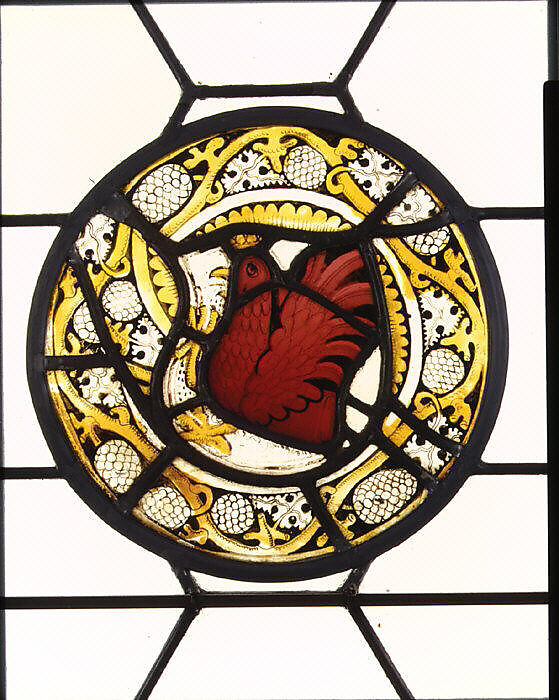 This roundel probably represents the members of a confraternity or honorary society. In the nineteenth century, this glass roundel was in a castle on the Moselle River, the home of Baron von Liebig, a collector of stained glass.