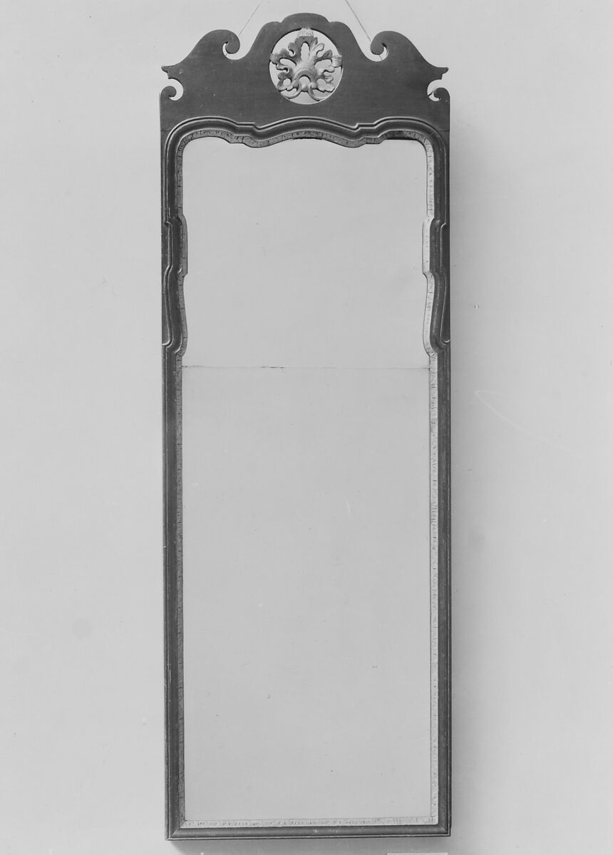 The mate to this looking glass is in the Dunne collection, Boston, Massachusetts, and bears the label of John Elliott Sr., who worked in Philadelphia (1762–67). Another almost identical looking glass, also bearing Elliott's label, is in the Winterthur Museum.