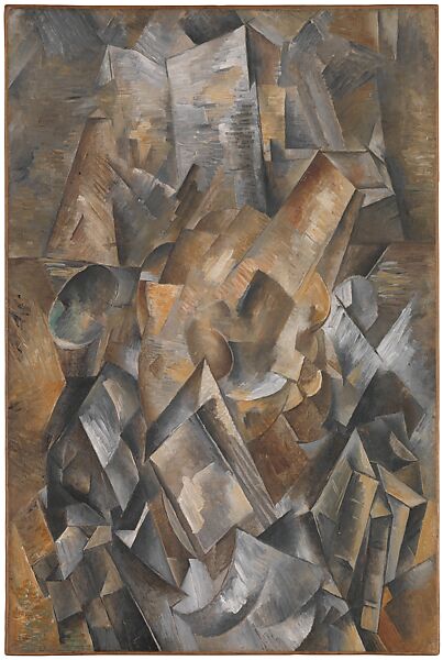 Braque worked in tandem with Pablo Picasso from 1907 until the start of World War I to develop Cubism, revolutionizing the depiction of forms in space by transforming objects through fragmentation, abstraction, and multiple perspectives. This canvas, one of five still-lifes dedicated to a musical theme that Braque made between late 1909 and early 1910, radically extends the artist’s Cubist experiments.