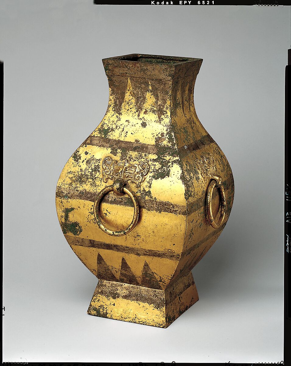 This imposing gilt bronze wine container exemplifies the technical and stylistic innovations in Chinese metalwork developed in the late fourth to second century BCE. It also illustrates a significant change in the function of bronzes from solemn ritual vessels to embodiments of wealth, power, and extravagance.