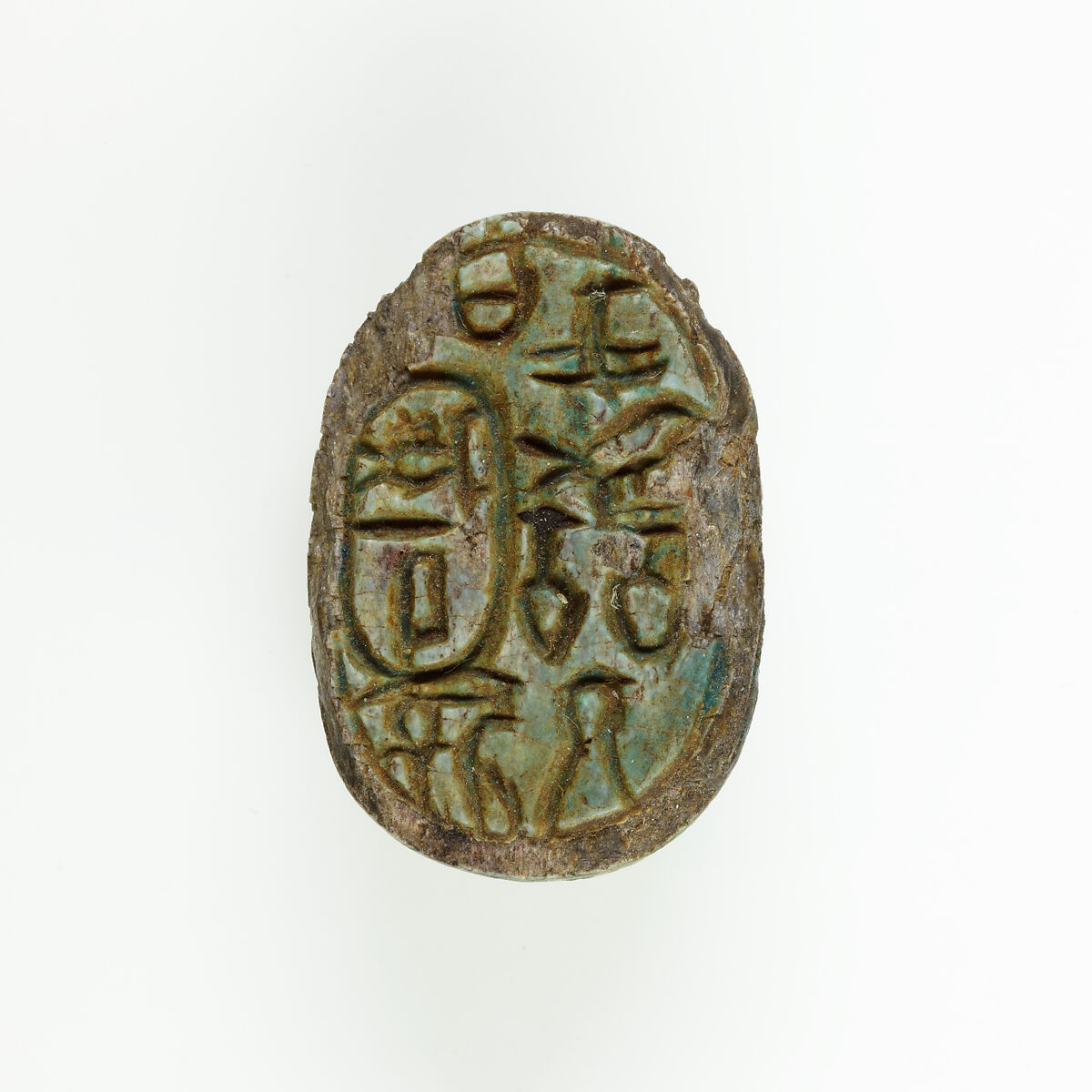 This scarab-shaped seal-amulet is inscribed with the name and royal titles of Queen Inni (Dynasty 13).