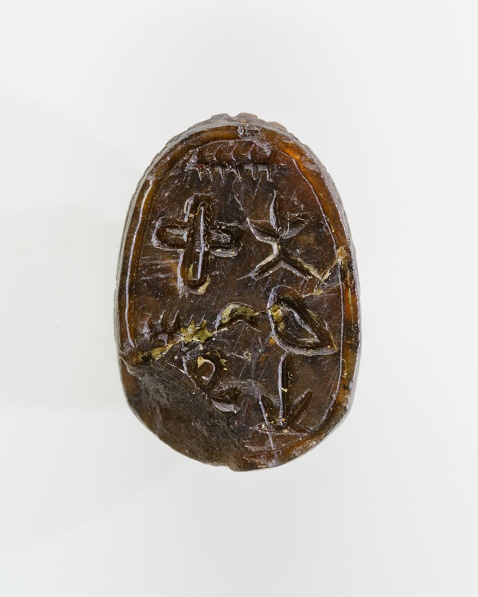 This scarab is inscribed for an astronomer (‘hour-watcher’), possibly named Ankh. The inscription is partly damaged where the name of the official is mentioned.