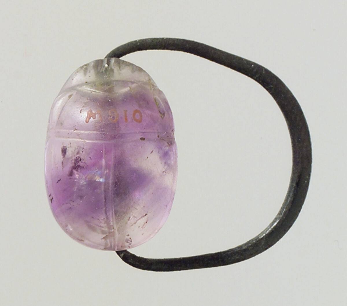 The scarab forms food balls out of fresh dung using its back legs to push the oversized spheres along the ground toward its burrow. The Egyptians equated this process with the sun's daily cycle across the sky, believing that a giant scarab moved the sun from the eastern horizon to the west each day, making the amulet a potent symbol of rebirth. The earliest scarab amulets appeared in the First Intermediate Period (ca. 2124 B.C.). During the Middle and New Kingdoms, they often were used as seals as well as amulets (ca. 2030–1070 B.C.). Scarabs remained common amulets in the Late Period (ca. 712–332 B.C.), and were still in use in Greek and Roman times (332 B.C.–364 A.D.).