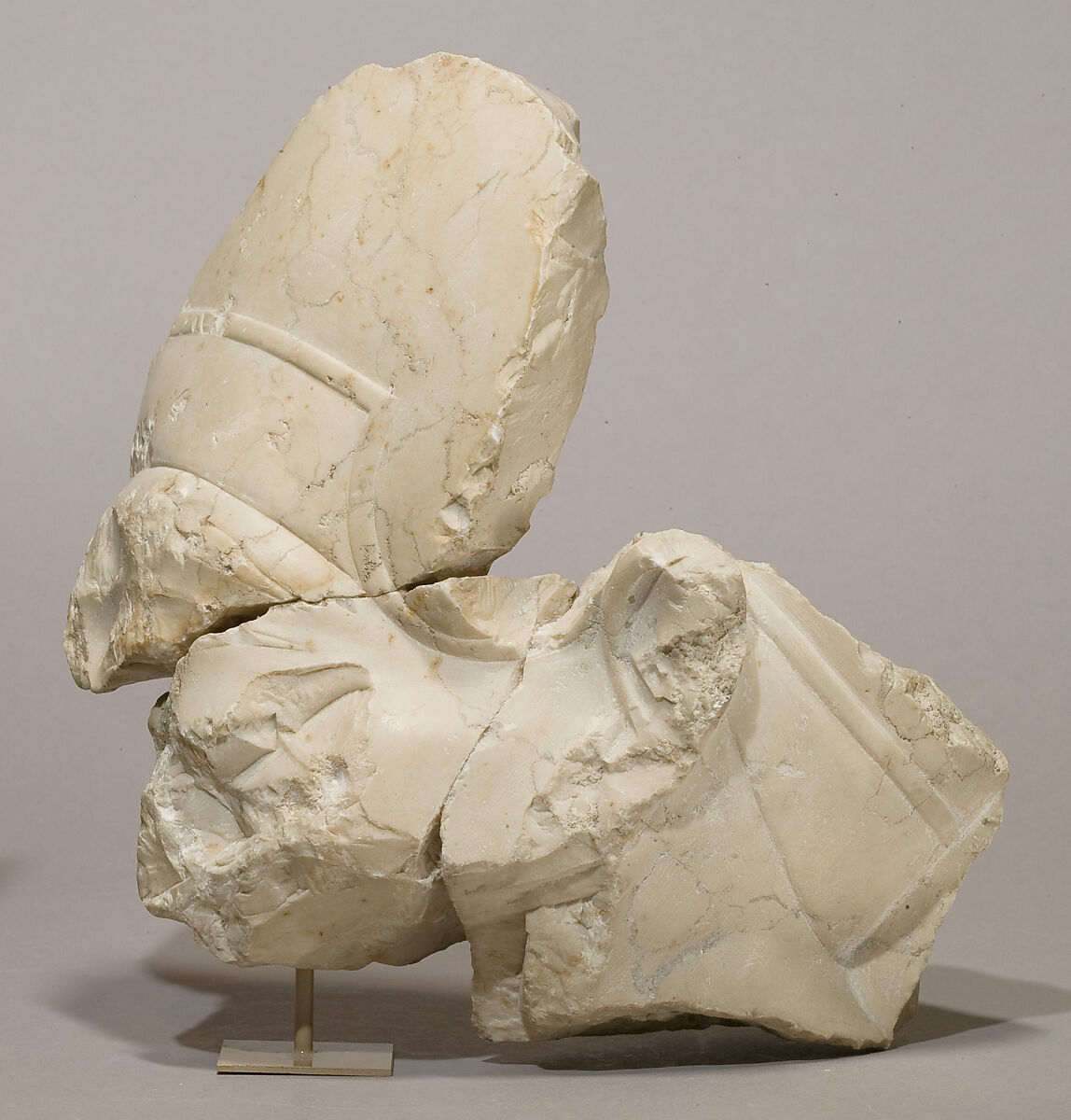 At some point after the end of the Amarna period, statues from the sanctuary of the Great Aten Temple at Amarna were demolished and their fragments left in the area of the sanctuary or in a dump outside the south temenos wall originally used for expendable material that had been used in the cult.The sanctuary and dump areas were excavated in 1891-92 by Howard Carter working for Flinders Petrie. When Petrie received almost all his finds from the Egyptian government, he allotted these sculpture fragments to Lord Amherst who had funded Carter's work. The Museum subsequently accquired most all of this important corpus, some four hundred fragments. Many joins have been made by curators over the decades, and the fragments are now being studied for the information they provide about the statuary that stood in the Aten Temple.