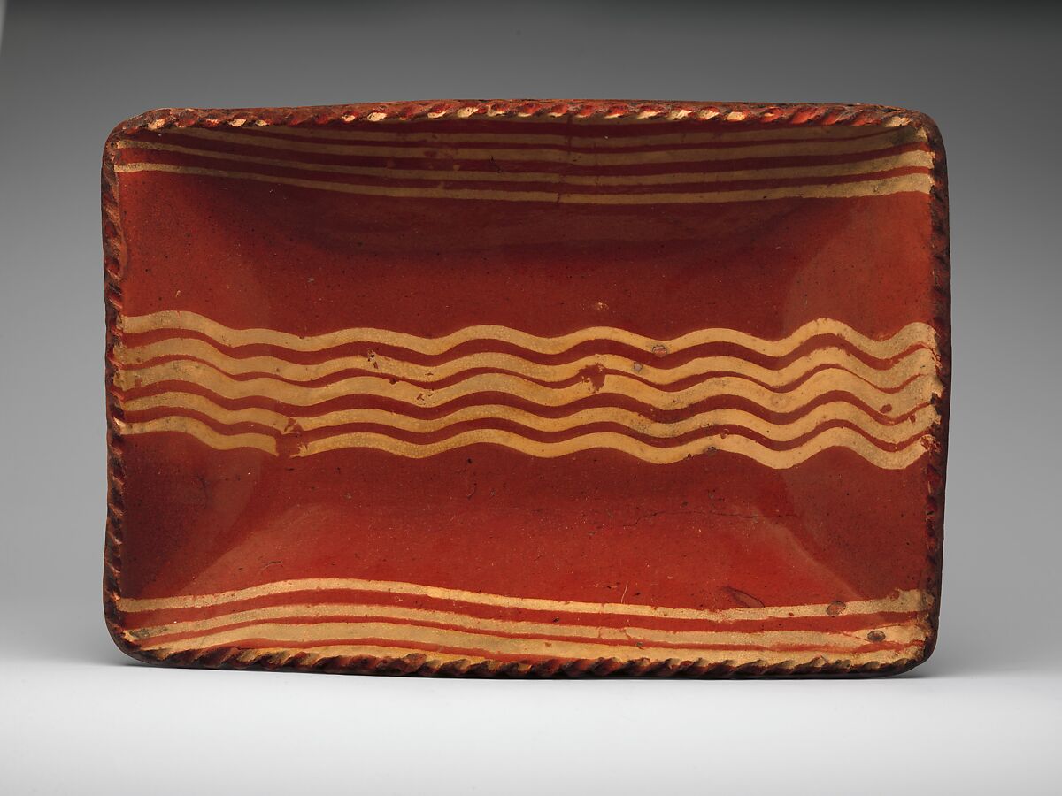 The very large coggled edge and slip decoration suggest an early date for this dish.