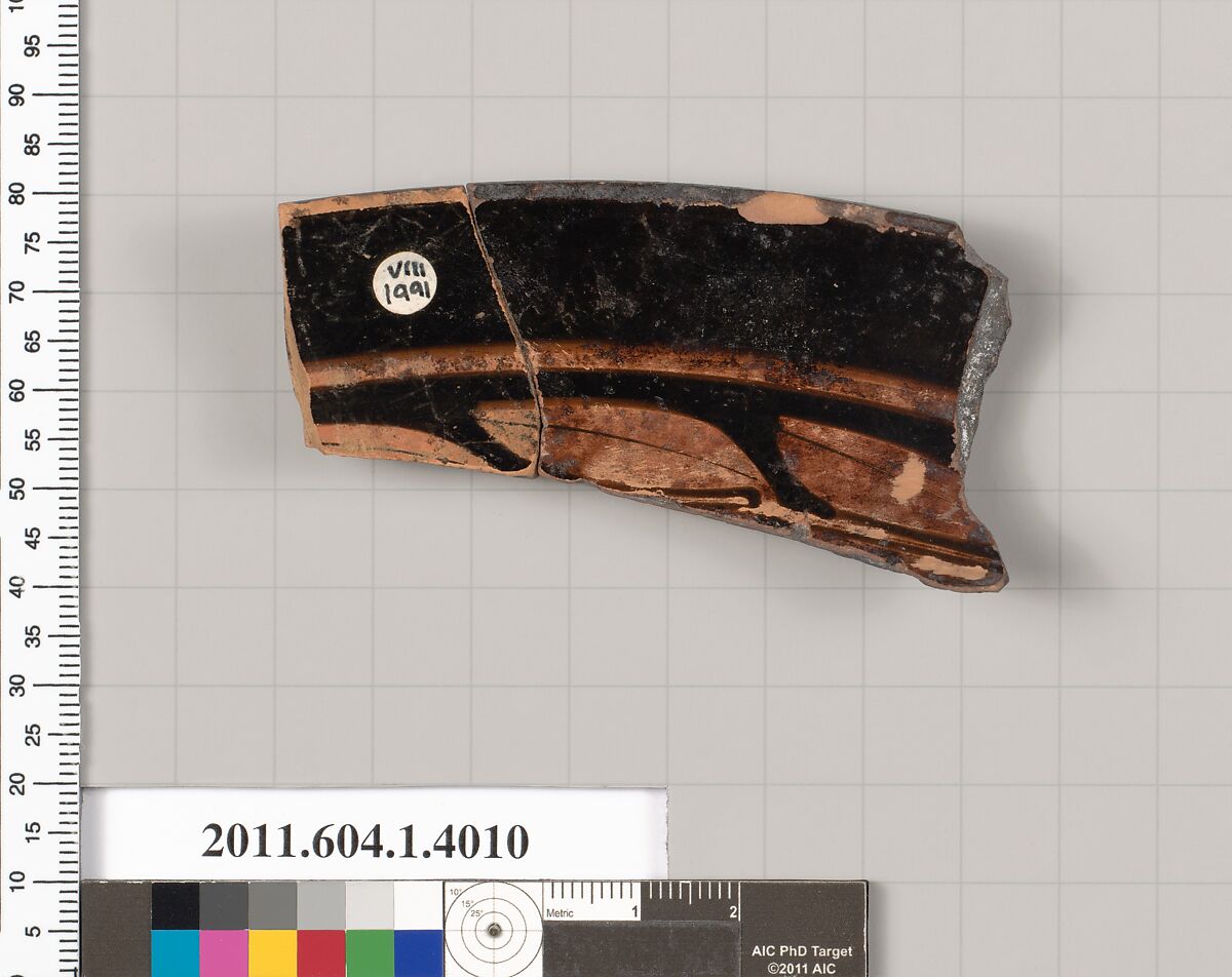 - Title: Terracotta rim fragment of a kylix (drinking cup)