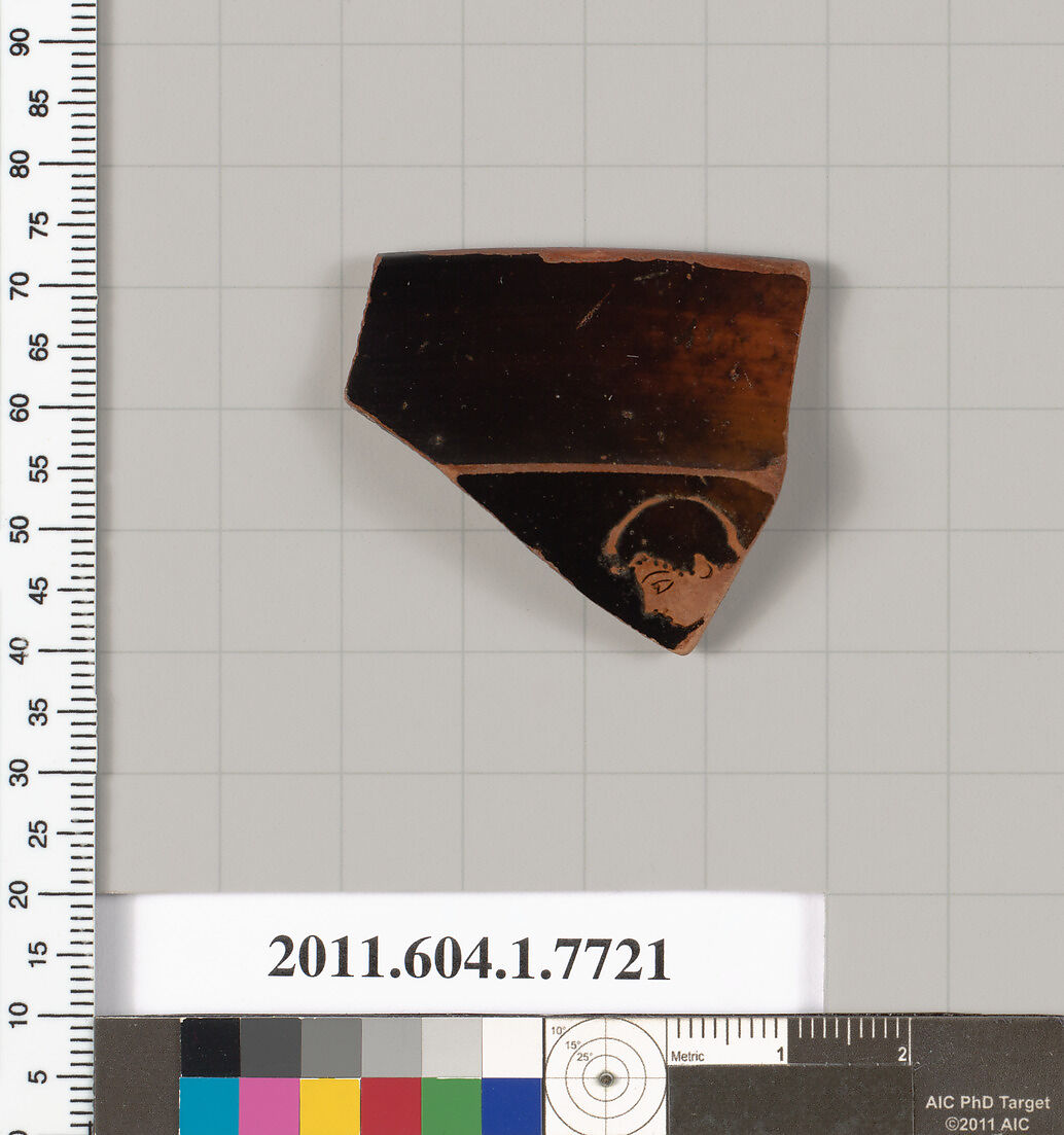 - Title: Terracotta rim fragment of a kylix (drinking cup)