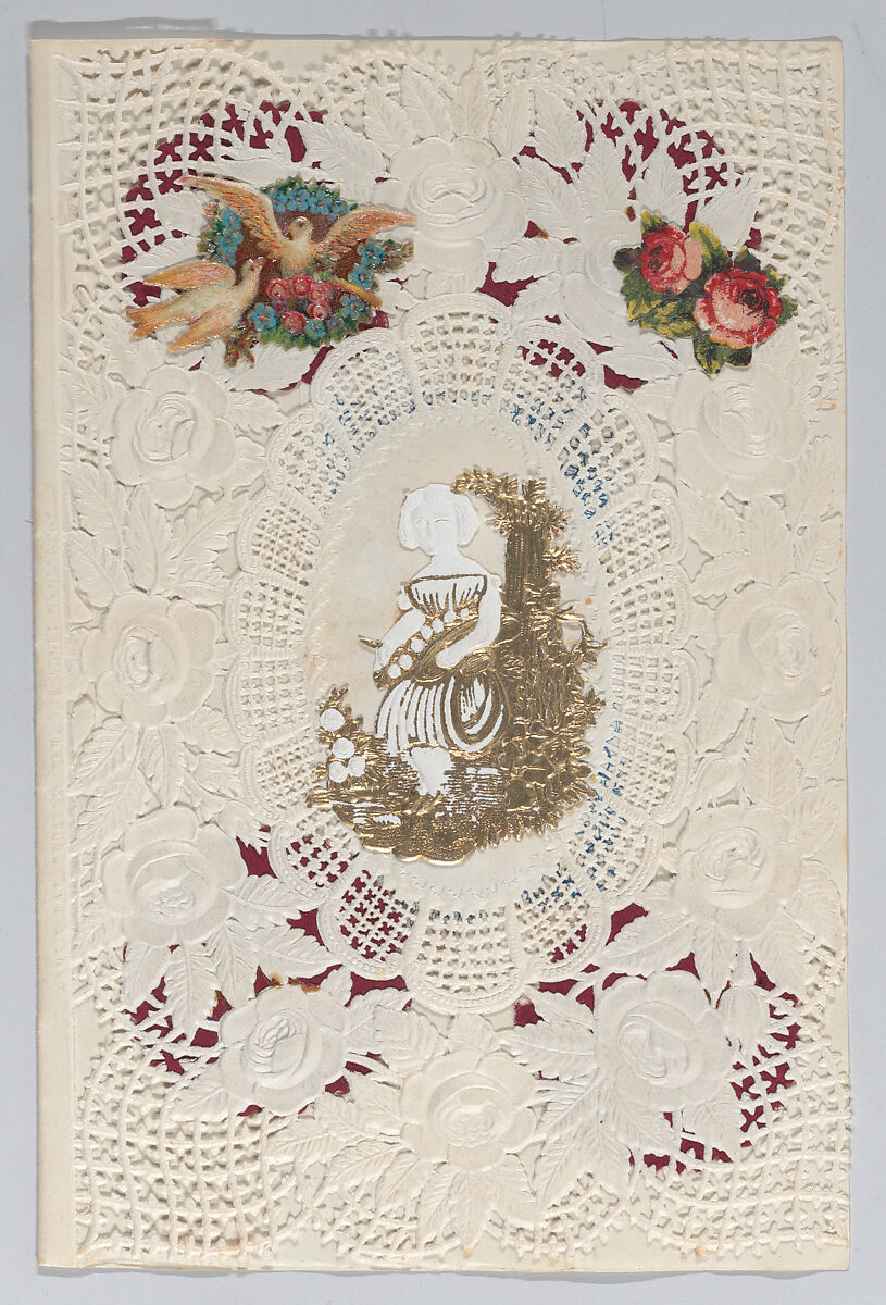 - Medium: Cameo-embossed, open-work lace paper, colored paper, chromolithography, die-cut scraps