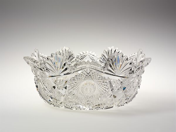 This satin-glass bowl is decorated with a diamond-shaped "air trap" pattern.