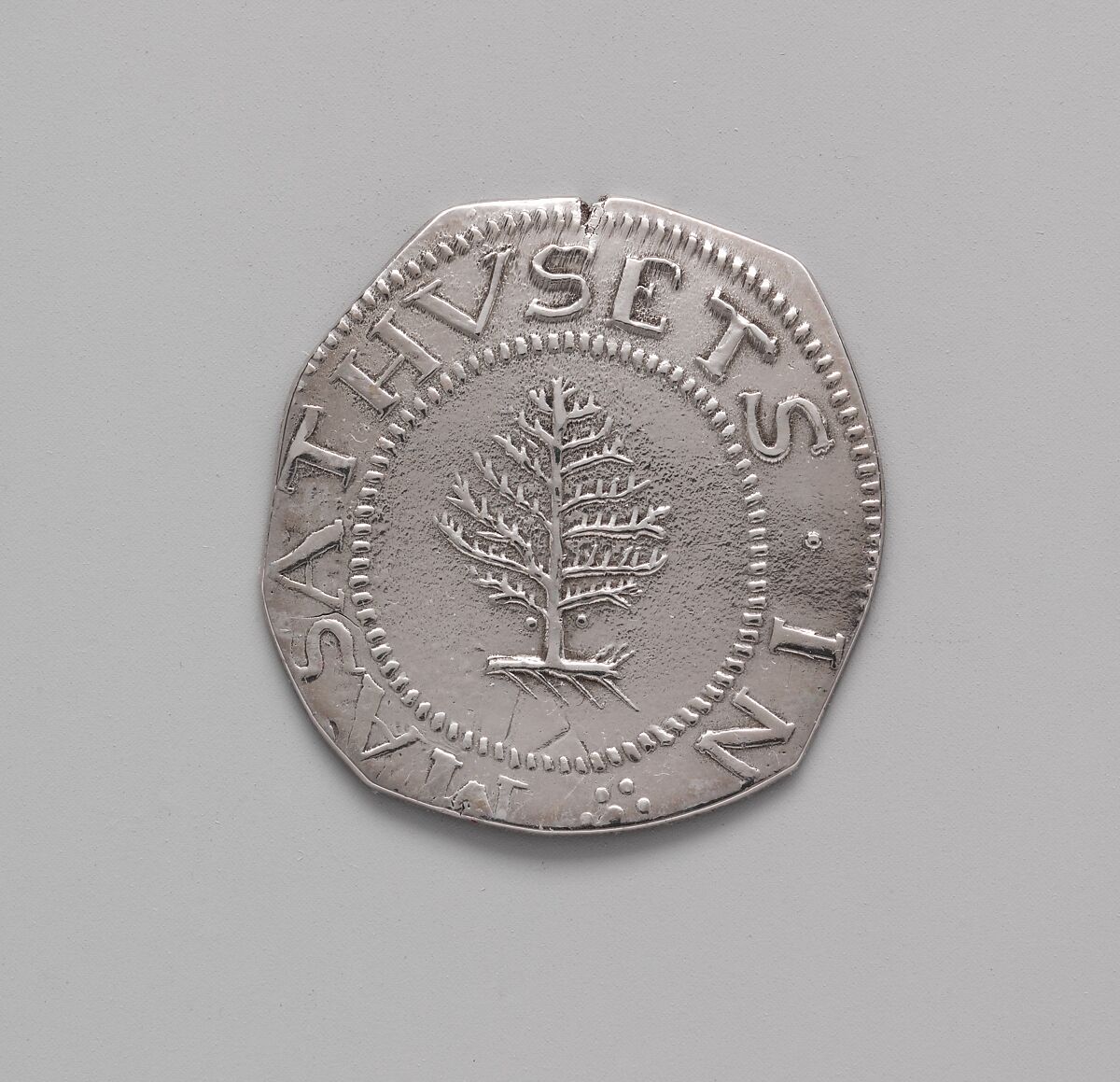 In 1652 John Hull and Robert Sanderson were appointed mint masters for the Massachusetts Bay Colony. Established in response to a chronic shortage of hard currency and the need for a reliable and efficient medium of exchange, the mint was operated by Hull and Sanderson for thirty years. During that period, it produced coins of various denominations and designs, ranging from a simple NE (for "New England") to a willow, oak, or pine tree encircled by beading; virtually all examples, however, were dated 1652.