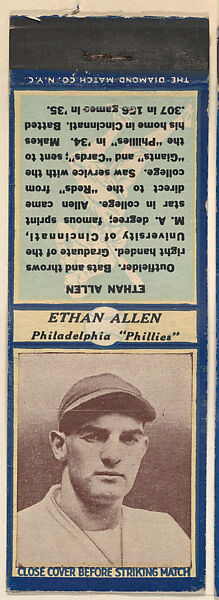 - Title: Ethan Allen, Philadelphia Phillies, from the Baseball Players Match Cover design series (U3) issued by Diamond Match Company