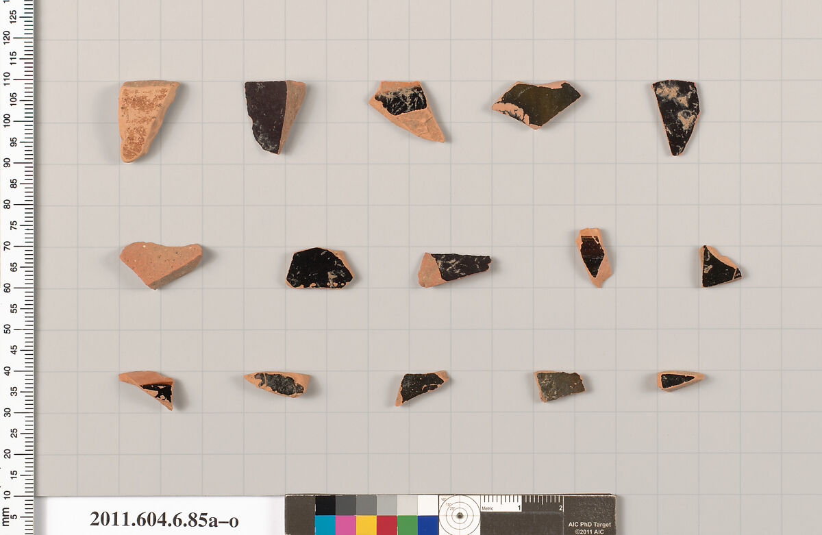 Fifteen black glazed fragments from undetermined shapes; sheared