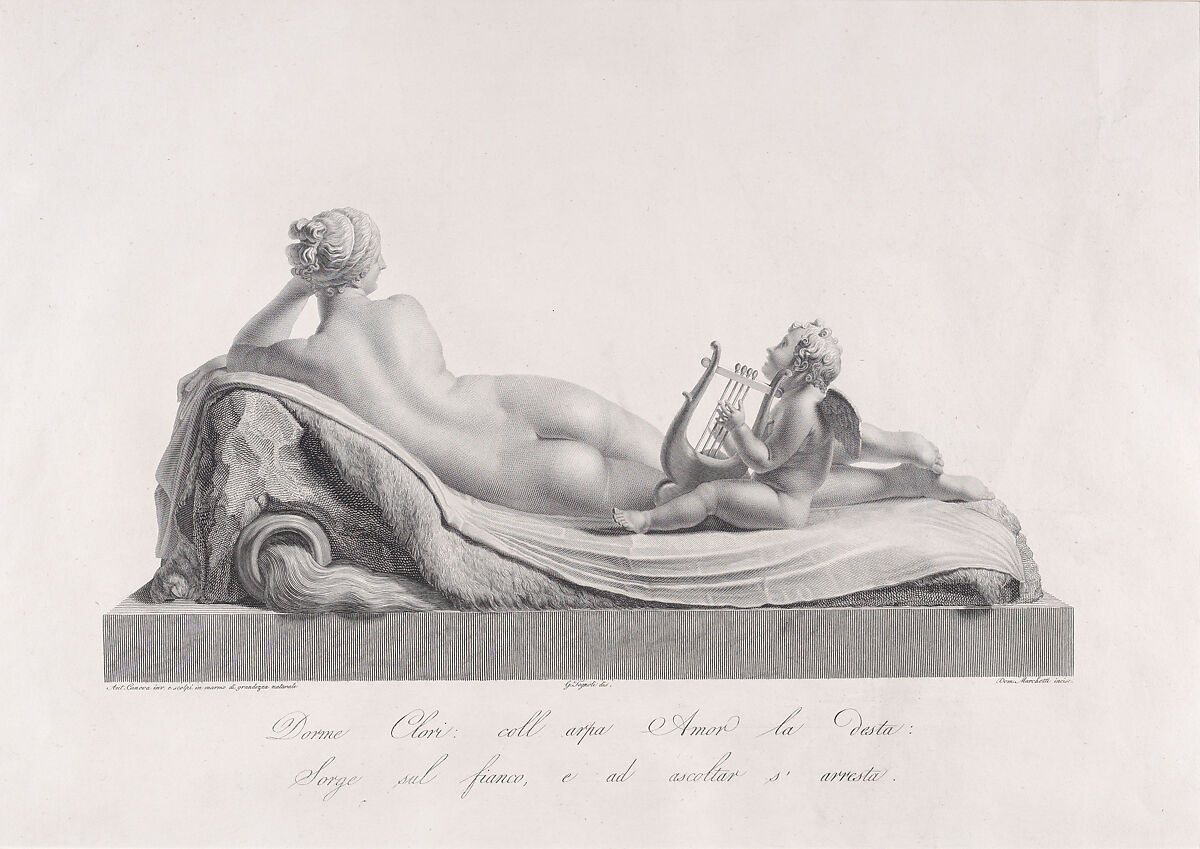 - Title: Back view of Venus reclining accompanied by Cupid with a harp, from "Oeuvre de Canova: Recueil de Statues..."